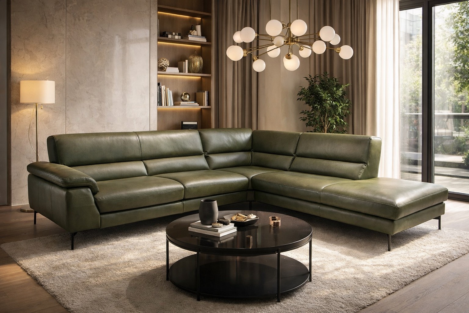 Аголна гарнитура Corin кожна е совршена гарнитура за модерна дневна соба или канцеларија. Достапна е како тросед/двосед/фотелја или аголна варијанта во повеќе димензии.