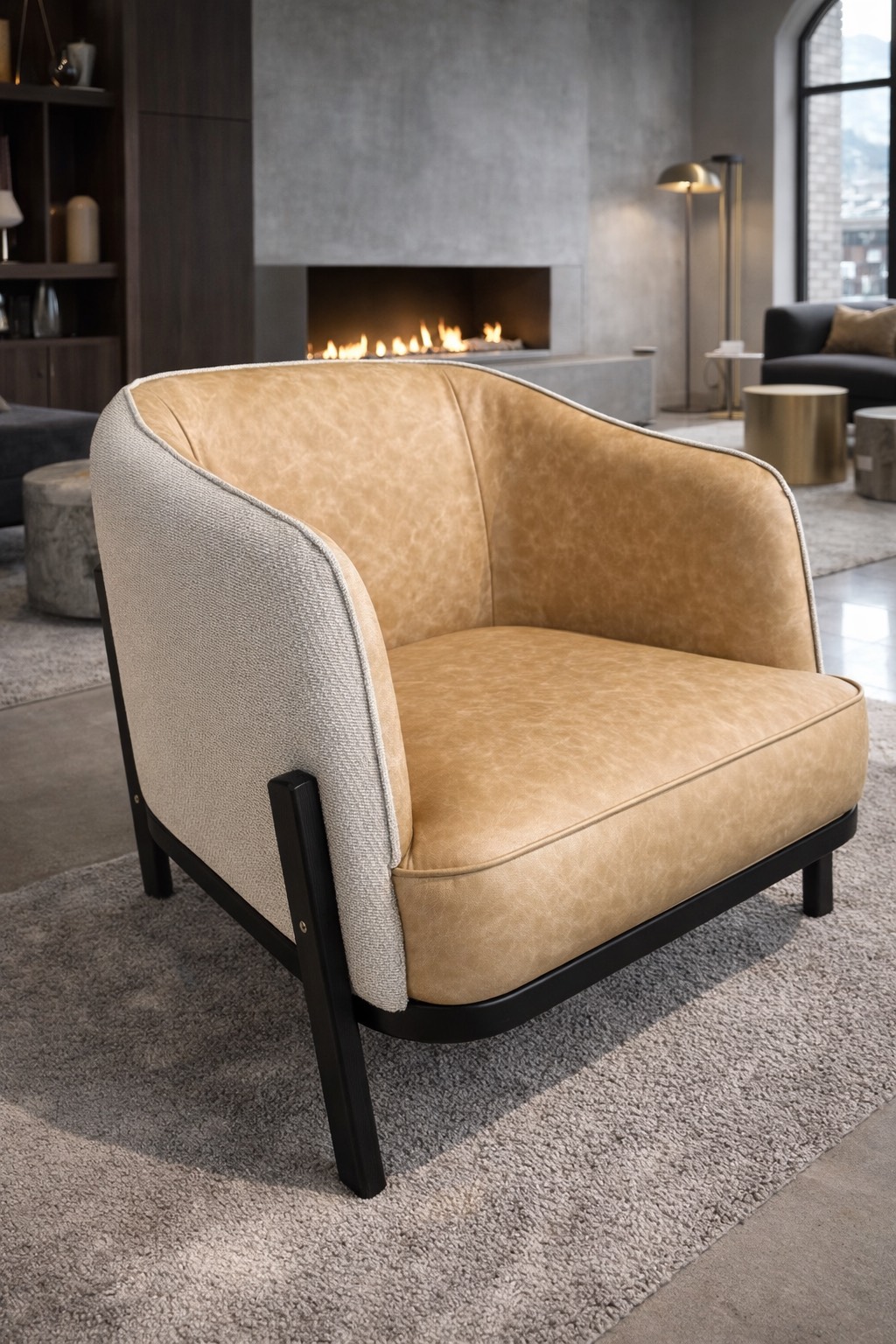 Фотелјата ONDA во комбинација од луксузна кожа и штоф претставува вистински пример за современ дизајн со карактер. Контрастот помеѓу меката текстура на штофот и елегантниот изглед на кожата создава визуелно богатство и префинетост што веднаш привлекува внимание.